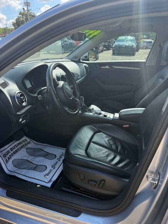 Welcome to Snell Auto Sales Of Elmira, where we present to you an exquisite 2015 Audi A3 PREMIUM in a gleaming silver finish. This sophisticated sedan boasts a journey of 110,042 miles and is powered by a robust 2L 4-cylinder engine coupled with a smooth 6-speed automatic transmission, ensuring a blend of performance and comfort. This Audi A3 is equipped with a suite of features for your safety and convenience, including active belts, anti-lock brakes, and a full array of airbags: dual rear side and rear head airbags for enhanced occupant protection. Experience the luxury of a power sun/moonroof as you cruise around town, and enjoy the added benefits of air conditioning, an AM/FM CD/MP3 stereo for your entertainment needs, and power windows for ease of use. The vehicle's driving experience is refined with power steering, power brakes, and a turbocharger that provides an extra boost when you need it. The immobilizer with keyless entry and alarm offers peace of mind, while the tilt steering wheel ensures a comfortable driving position. Don't miss the opportunity to own this premium Audi A3, a perfect blend of elegance and functionality. Visit us at Snell Auto Sales Of Elmira today!