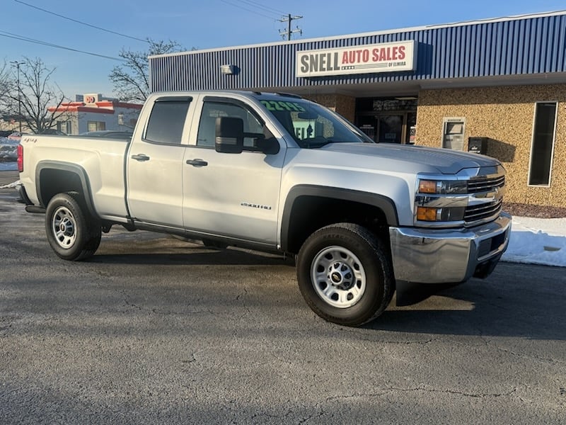 Welcome to Snell Auto Sales Of Elmira, where we're proud to present the rugged and capable 2017 Chevrolet Silverado K2500 HEAVY DUTY. Dressed in a sleek silver hue, this robust truck has been built to tackle any task with its powerful 6L 8-cylinder engine paired with a smooth 6-speed automatic transmission. Currently, it stands with 103,010 miles on the odometer, ready for many more. The Silverado doesn't just boast strength; it's also equipped with an impressive array of features for safety and comfort. Enjoy peace of mind with active belts, keyless entry, anti-lock brakes, and a comprehensive airbag system including dual front head and side airbags. Convenience is at your fingertips with air conditioning, AM/FM CD/MP3 stereo, and power steering. Enhanced with electronic stability control and traction control, this truck ensures a secure drive in all conditions, while the tilt steering wheel provides customizable comfort for the long haul. Don't miss the opportunity to own this well-appointed workhorse.