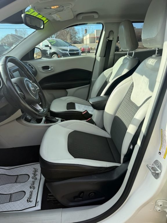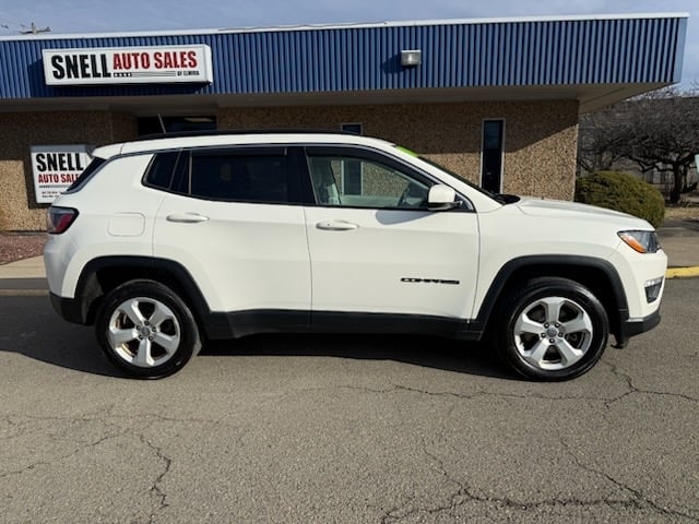 Discover great value at Snell Auto Sales of Elmira with this 2018 Jeep Compass Latitude. This white SUV pairs dependable performance from its 2.4L 4-cylinder engine with the smooth shifting of an automatic transmission. Inside, enjoy comfort and convenience features such as air conditioning, power windows, and a tilt steering wheel. Stay connected and entertained with an AM/FM CD/MP3 stereo, while safety is enhanced through anti-lock brakes, dual front, head and side airbags, rear side airbags, and a backup camera. Additional highlights include traction control, electronic stability control, keyless entry, and daytime running lights. With 144,264 miles, this Compass is ready for your next adventure.