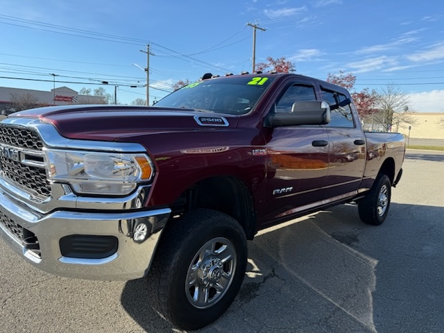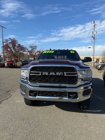Welcome to Snell Auto Sales Of Elmira, where we present to you the robust 2021 Ram 2500 TRADESMAN. Dressed in a vibrant red, this workhorse has clocked 91,339 miles and is powered by a potent 6.4L 8-cylinder engine paired with an 8-speed automatic transmission for smooth and responsive handling. The Tradesman trim comes equipped with a suite of options to enhance your driving experience, including active belts, air conditioning, and an AM/FM CD/MP3 stereo for your entertainment needs. Safety is prioritized with anti-lock brakes, daytime running lights, and dual airbags in the front and sides. Convenience features like passive sentry key, power brakes, power steering, power windows, and a tilt steering wheel make your ride comfortable and effortless. Come in today and take a closer look at this dependable and well-equipped pickup, ready to tackle any job you throw its way.