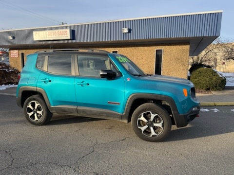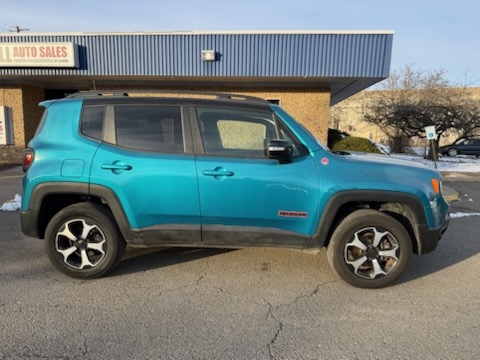 Step into adventure with the rugged yet stylish 2022 Jeep Renegade TRAILHAWK, now available at Snell Auto Sales Of Elmira. This teal trail conqueror has journeyed 85,654 miles and is powered by a turbocharged 1.3L 4-cylinder engine coupled with a smooth automatic transmission. Ready to tackle any road condition with its robust suite of safety features including Active Belts, Adaptive Driving Beam, Anti-lock Brakes, and an array of airbags to keep you safe from front to side. Driving this Renegade ensures peace of mind with advanced driver assistance options like Blind Spot Warning, Lane Departure Warning, Forward Collision Warning, and Lane Keeping Assistance. Plus, enjoy the convenience of an auto-reverse system for windows and sunroofs, a backup camera, and keyless entry with an alarm. Whether you're navigating city streets or exploring off-road trails, the Jeep Renegade TRAILHAWK offers the perfect blend of power, protection, and performance. Visit us at Snell Auto Sales Of Elmira and take the first step towards your next grand adventure.