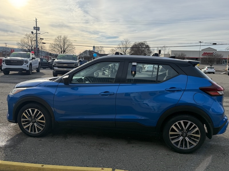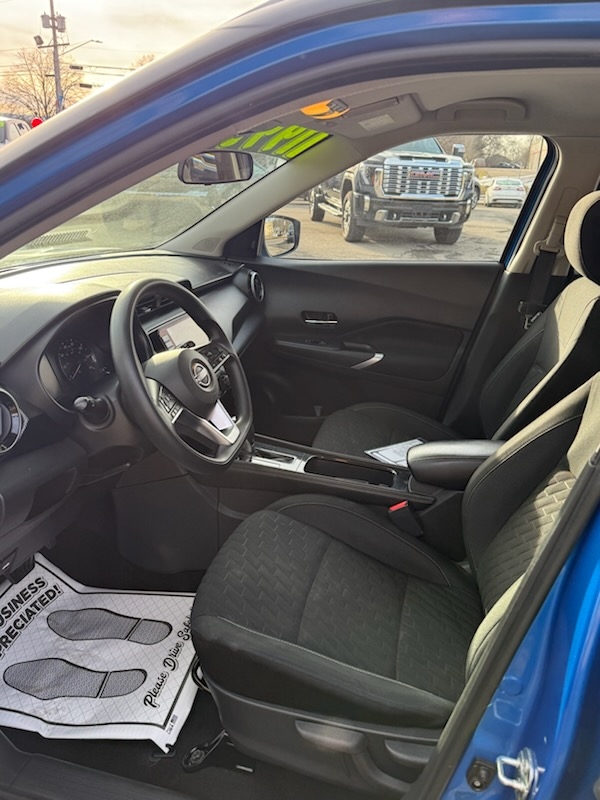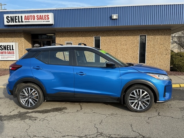 Welcome to Snell Auto Sales Of Elmira, where we present to you a stunning 2022 Nissan Kicks SV in a vibrant shade of Blue. This modern crossover has been driven 142,104 miles and is powered by an efficient 1.6L 4-cylinder engine paired with a smooth CVT transmission. The Kicks SV model comes loaded with advanced options for your safety and comfort, including Active Belts and an Auto-Reverse System for windows and sunroofs, ensuring your peace of mind. It also features a Backup Camera, Blind Spot Warning (BSW), and Parking Assist to enhance your driving convenience. For those who prioritize safety, you'll appreciate the Forward Collision Warning (FCW), Lane Departure Warning (LDW), and the added protection of Dual Rear Side Air Bags and Rear Head Air Bags. The Kicks is also equipped with an Immobilizer and keyless entry, as well as Keyless Ignition for seamless starts. Day or night, the Adaptive Driving Beam (ADB) and Semiautomatic Headlamp Beam Switching ensure you're never left in the dark. Come test drive this feature-packed vehicle and experience the perfect blend of style and functionality.